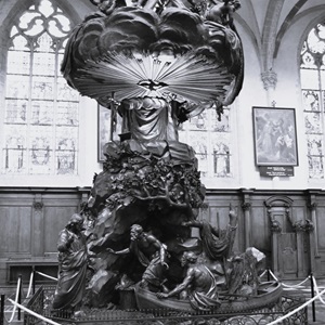 Blijf ook even staan voor de pijler links van het koor, voor je naar de preekstoel gaat.